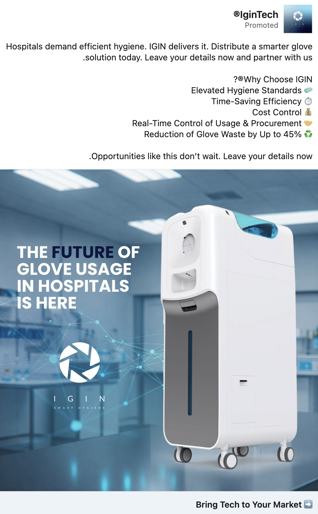 IGIN היא חברה טכנולוגית בינלאומית פורצת דרך, אשר שינתה את הדרך בה מוסדות ואנשי מקצוע מתנהלים עם כפפות חד־פעמיות.